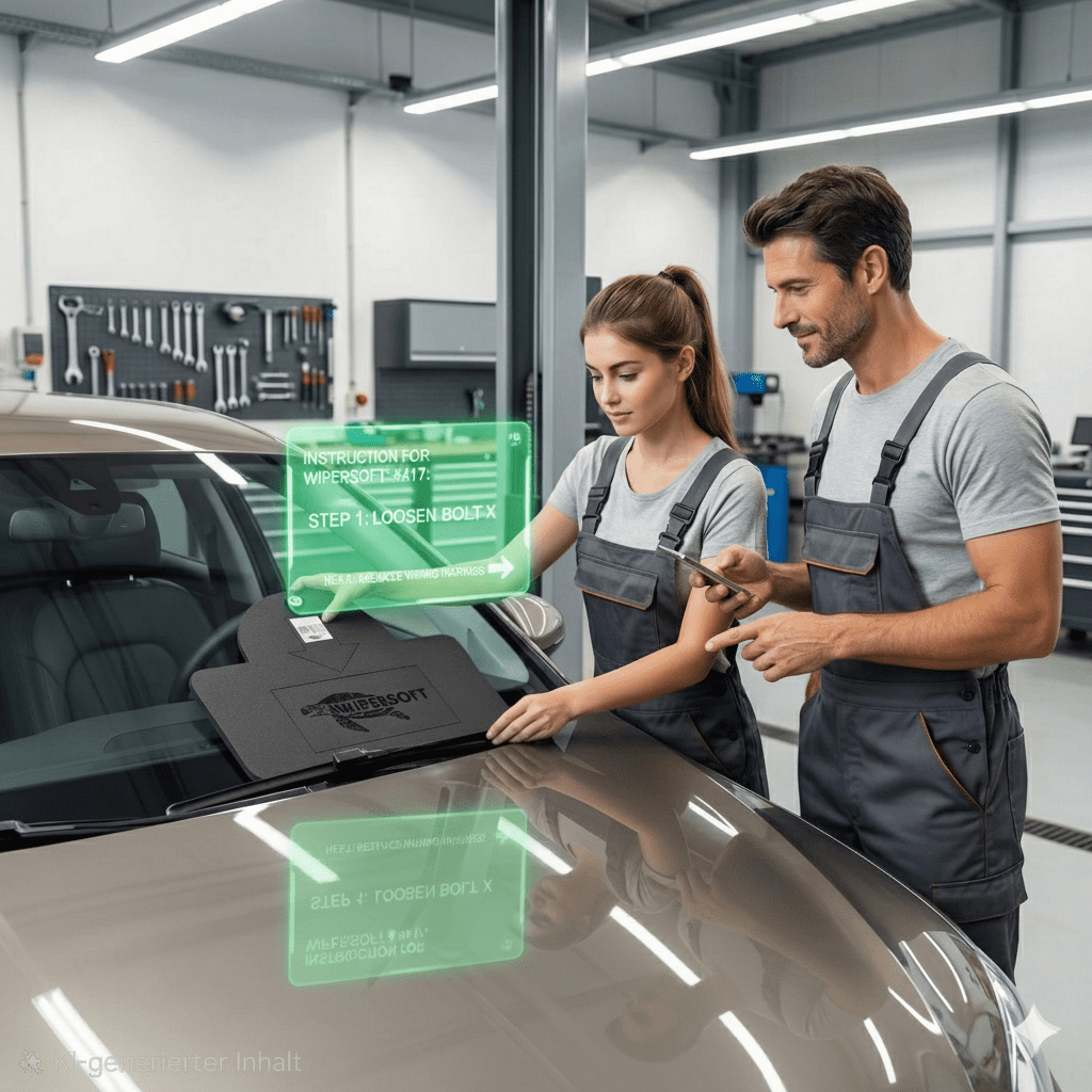 Der Praxis-Nutzen: In der Werkstatt zählt jede Sekunde. Mit öligen Fingern oder Handschuhen ist das Tippen am Display mühsam. Ein kurzer „Tap“ mit dem Handy am WIPERSOFT® öffnet sofort die exakte Anleitung.
